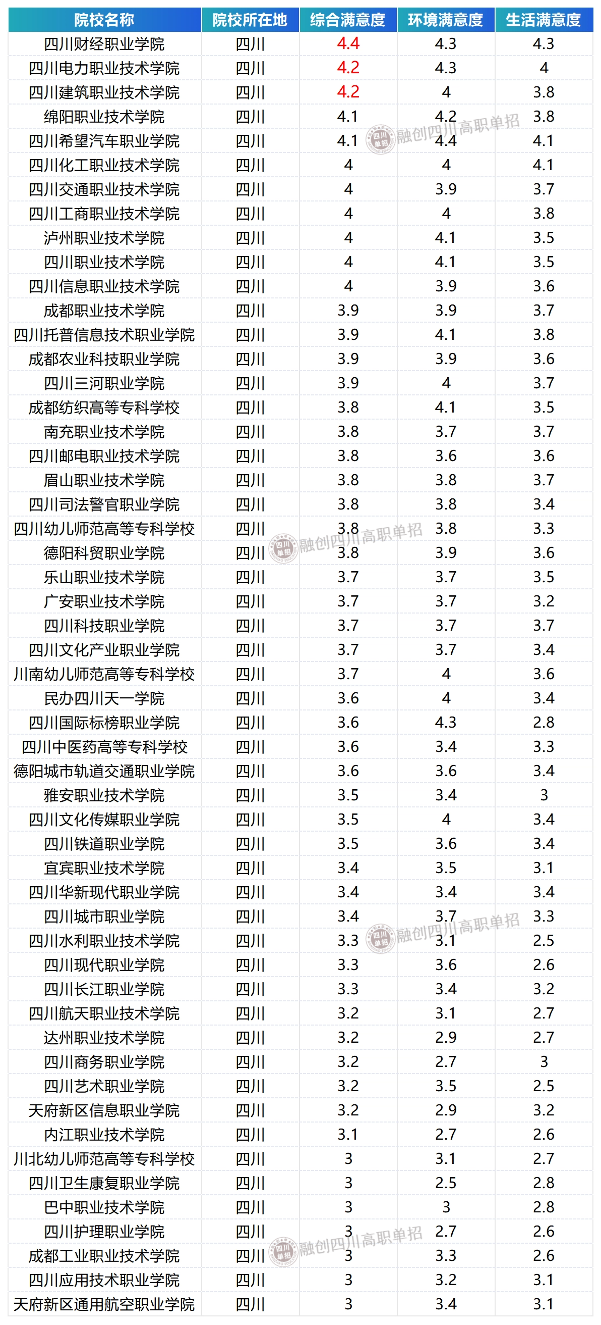 2025年四川高職專(zhuān)科院校滿意度排行榜