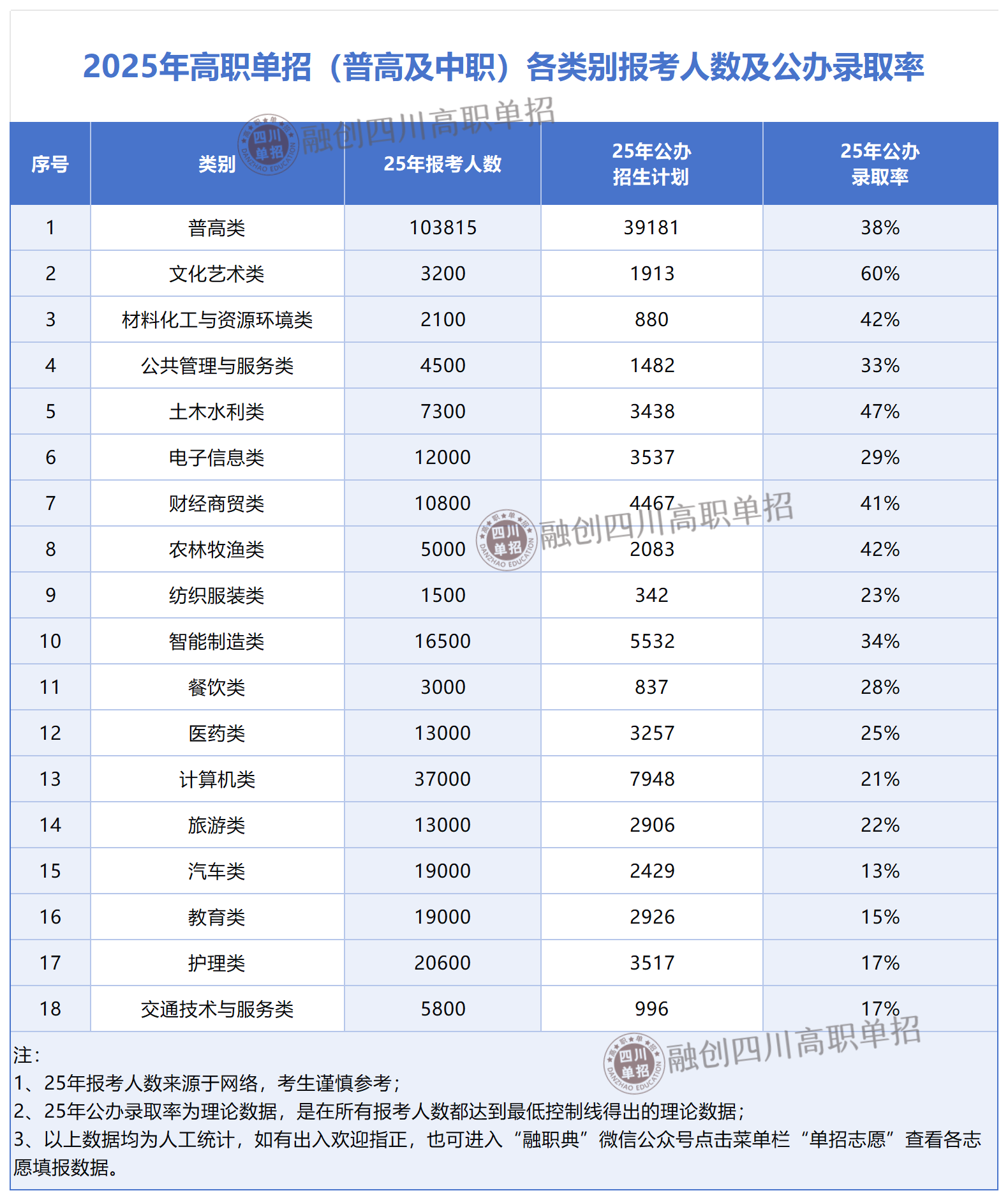 四川高職單招作為四川考生升學(xué)的核心通道,2025年四川高職單招報考人數(shù)達(dá)29.7萬,招生計劃24萬,超5萬考生落榜,升學(xué)競爭持續(xù)加劇,今天小編為大家統(tǒng)計了2025年四川高職單招各類別的公辦錄取率,給大家做參考。特別是在猶豫要不要參加四川單招培訓(xùn)的考生,如果分?jǐn)?shù)不高但是目標(biāo)院校錄取分比較高的可以考慮參加四川單招培訓(xùn)來快速高效提分。