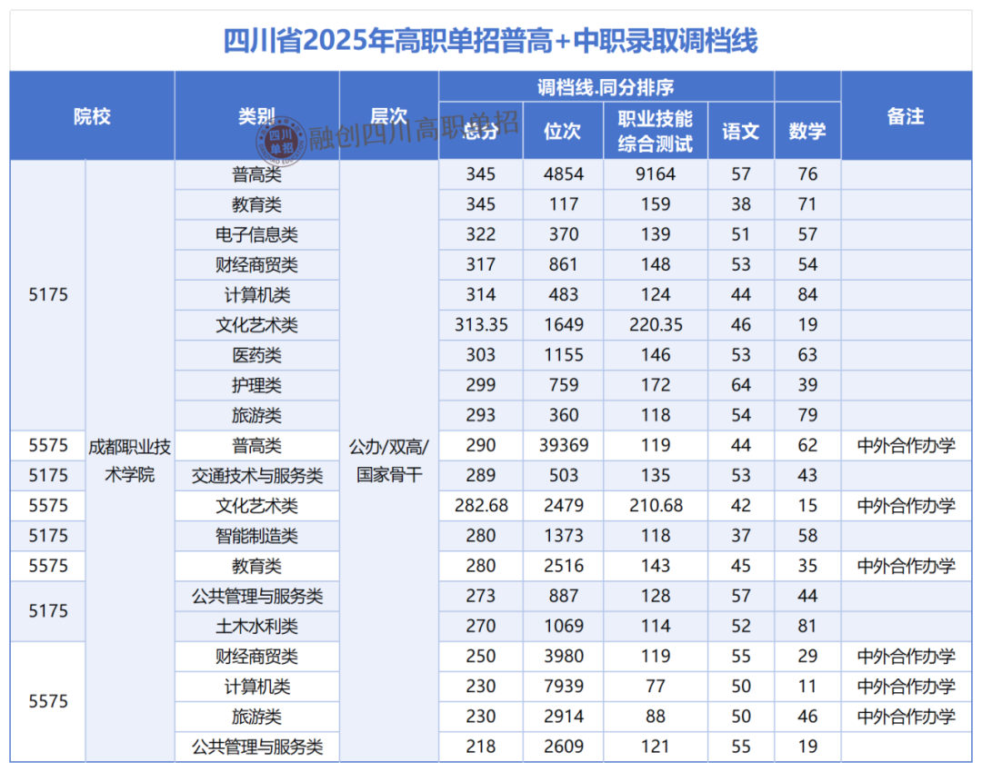 【普高+中職】四川單招錄取調(diào)檔線匯總